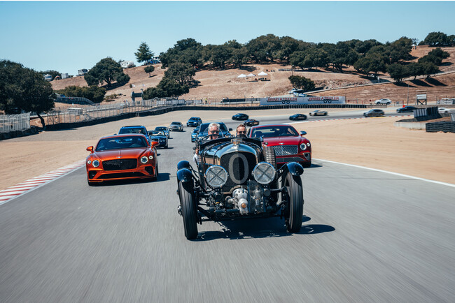 ベントレーの車たちはラグナ・セカに到着後すぐにパレードラップを行いました。パレードの先頭を走ったのはベントレーマリナーのブロワーコンティニュエーションシリーズの最初の車であるブロワー・カーゼロで、ベントレーの会長兼CEOであるエイドリアン・ホールマークが運転しました。ブロワーにスピード 8が加わり、ベントレーモーターズとル・マン24時間レースの長年の関係を象徴する2台が劇的な出会いを果たしました。