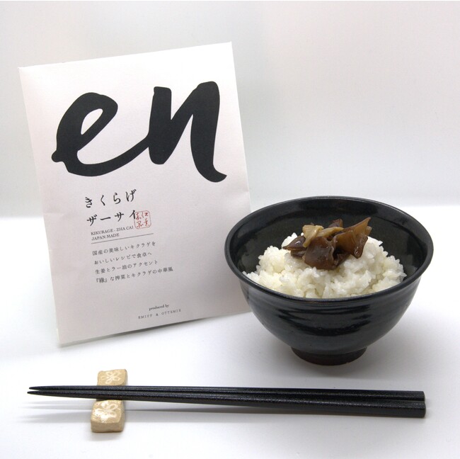 今回販売する「en」シリーズは“きくらげザーサイ”、 “きくらげめんたい”、“きくらげうめとおかか”の3種類で、ご家庭でのご利用はもちろん、3種類セットでのギフトとしてもご利用いただけます。