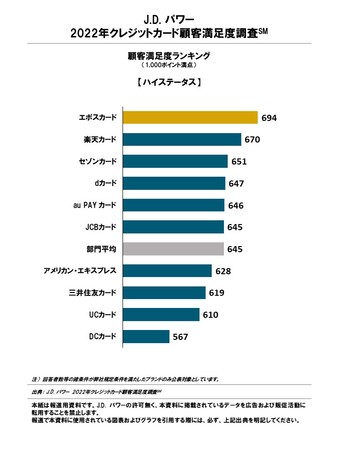 (本社:東京都港区、代表取締役社長:山本浩二、略称:J.D. パワー)は、J.D. パワー 2022年クレジットカード顧客満足度調査(SM)の結果を発表した。