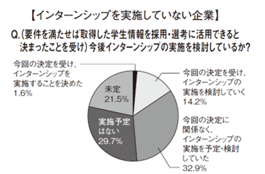 (4)インターンシップを実施していない企業は、14.2%が「今回の決定を受け、インターンシップの実施を検討」