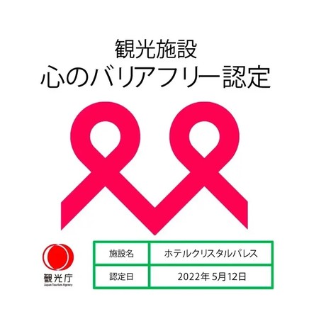 ホテルテラスザガーデン水戸はバリアフリー対応や情報発信に積極的に取り組む姿勢のある観光施設を対象とした「観光施設における心のバリアフリー認定制度」の認定を得た宿泊施設です。ご高齢の方や障害のある方がより安全で快適な旅行をするための環境整備に努めております。