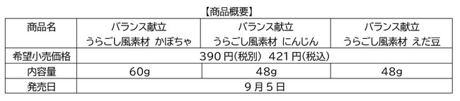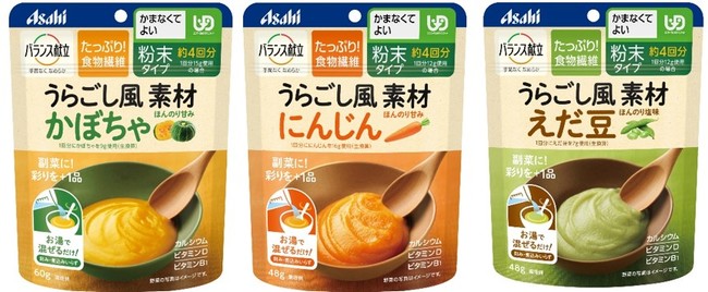 アサヒグループ食品株式会社(本社 東京、社長 川原浩)は、「バランス献立」ブランドから、粉末タイプのやわらか食「うらごし風素材」を9月5日から全国で発売します。「かぼちゃ」「にんじん」「えだ豆」の3種の素材で展開します。