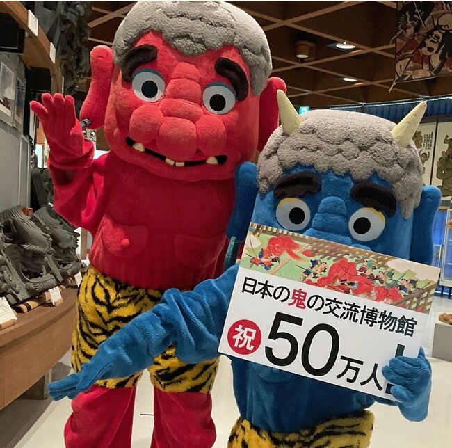 2022年7月30日、日本の鬼の交流博物館は多くの鬼ファンや地元の方々に支えていただいたおかげで1993年4月の開館以来、入館者数50万人を達成することができました。来年博物館は30周年という節目の年を迎えます。これからも魅力あふれる鬼文化の発信に努めてまいりますので、よろしくお願いいたします。
