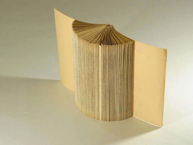 1967年埼玉県生まれ。東京藝術大学大学院美術研究科油画専攻修了。埼玉県在住。文字や言葉を独自の感覚と思考で捉え、その世界観を自分の身近にある本や文房具に、手作業を加えることで作品化する。こうした制作と並行して回文(始めから読んでも終わりから読んでも同じ文章)の詩作も手掛け発表を続けている。本展では、2003年から着手された代表的な本のシリーズ「翼あるもの」を、旧朝香宮邸の書庫、書斎、殿下居間にあたかも鳥が群れをなすように展示を試みる。福田によって1頁1頁と折りたたまれ、最後に本の中から偶然に立ち現れる1行の文字。その短い言葉は、見る者の思考や経験と繋がり、それぞれの脳裏の中で彼方へと羽ばたく。