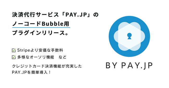 決済代行サービス「PAY.JP」を導入できる、ノーコードBubble用のプラグインを開発。Stripより安価な手数料、長期なオーソリなどクレジットカード決済機能が充実したPAY.JPを簡単に導入!