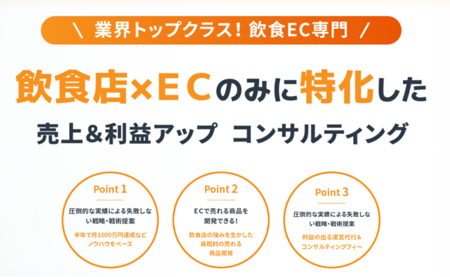 飲食ECコンサルティング・運営代行により飲食店だけでない、新たな事業の柱を確立する