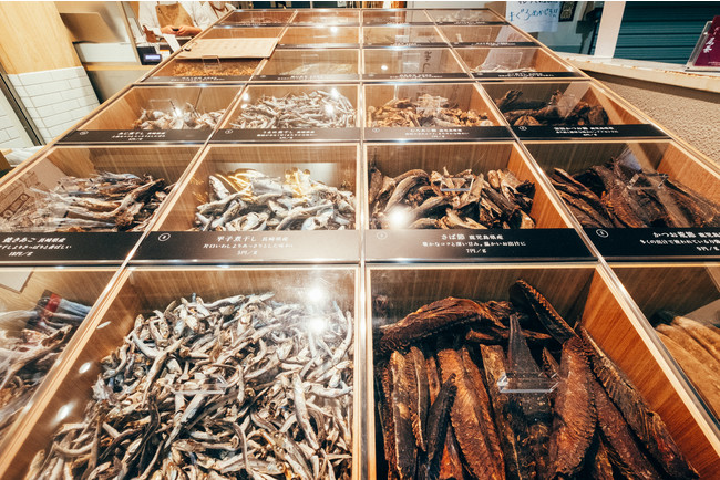24種類の原料には、かつお本枯節、焼きあご、羅臼昆布、どんこなどに加え、のどぐろ煮干し、かます煮干し、するめなど、水産仲卸ならではの珍しい素材も取り揃える。