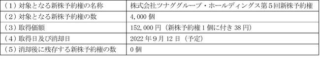 当初の目的でありました、システム投資やM&Aを含む資本業務提携等の成長戦略資金並びに、マーケティング活動や人材の採用や育成等の事業活動資金に一定量の確保ができたため、取得日において残存する新株予約権の全部を取得する事を決議いたしました。