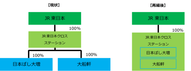 株式会社JR東日本クロスステーション(東京都渋谷区、代表取締役西野史尚)と株式会社日本ばし大増(東京都荒川区、代表取締役穐山健輔)、株式会社大船軒(神奈川県鎌倉市、代表取締役今野高之)は、JR東日本グループの最大の経営資源である駅の価値最大化に向け、グループ総合力の強化を図るため2023年4月1日をもって合併します。