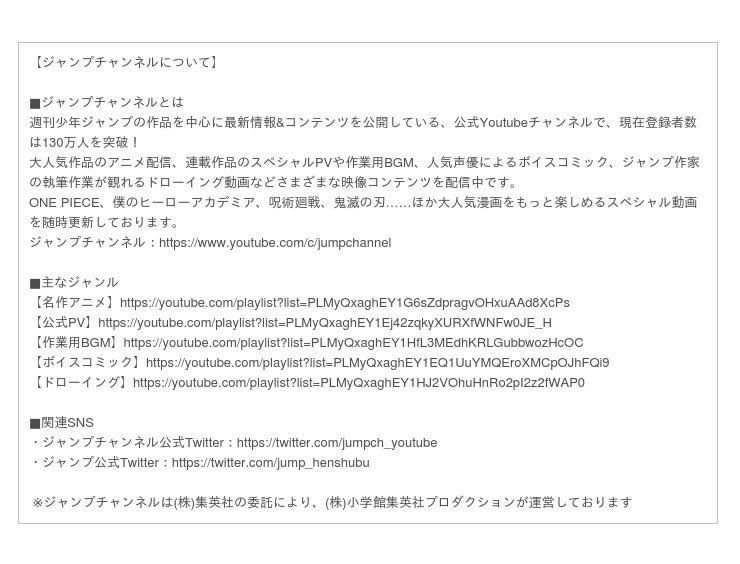 ・ジャンプチャンネル公式Twitter:https://twitter.com/jumpch_youtube