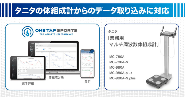 ONE TAP SPORTSが、タニタの業務用マルチ周波数体組成計5機種からのデータ取り込みに対応