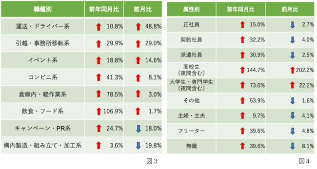 【職種別】「飲食・フード系」「倉庫内・軽作業系」が前年同月比で大きく増加