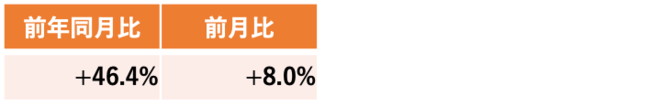 【全体】前年同月比+46.4%、前月比+8.0%