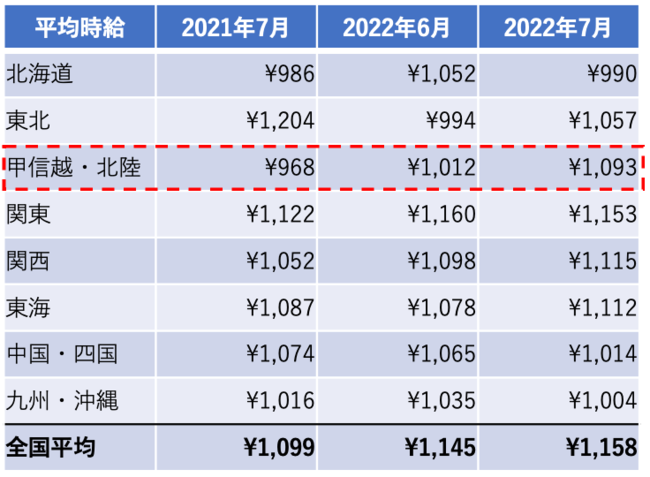 全国平均時給は、前年同月比、前月比でともに増加しています。