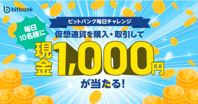 【暗号資産取引ならビットバンク】毎日10名様に現金1,000円が当たる!「ビットバンク毎日チャレンジ」プログラムがスタート