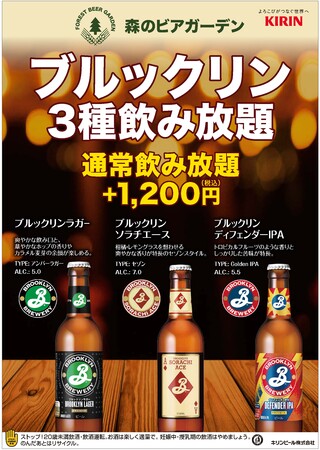 森のビアガーデン「ブルックリン・ブルワリー」ブランドのクラフトビール3種類が飲み放題になるグレードアッププランが登場!