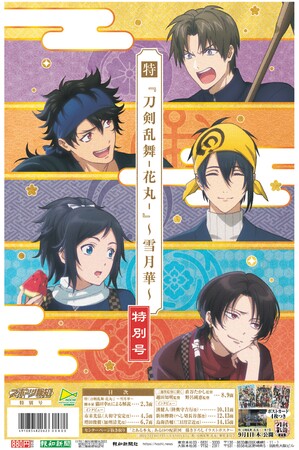 スポーツ報知を発行する報知新聞社(代表取締役社長・依田裕彦)は9月1日から劇場限定上映される「特『刀剣乱舞-花丸-』~華ノ巻~」の公開に合わせ、「特『刀剣乱舞-花丸-』~雪月華~」特別号(タブロイド判オールカラー16ページ+抜き取りポスター、ポストカード4枚セット、税込880円)を発売します。