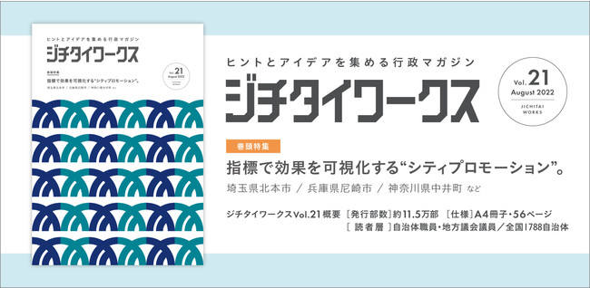 官民連携・自治体同士の連携の促進を目的とする媒体発行・プロモーション支援事業等を行う株式会社ジチタイワークス(本社:福岡県福岡市、代表取締役社長:時津孝康)は、ヒントとアイデアを集める行政マガジン『ジチタイワークス』Vol.21を2022年8月30日に発行いたしましたのでお知らせいたします。