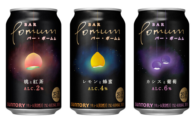 サントリー(株)は、「BAR Pomum(バー・ポームム)〈桃と紅茶〉」「BAR Pomum〈レモンと蜂蜜〉」「BAR Pomum〈カシスと葡萄〉」を10月4日(火)から全国で新発売します。