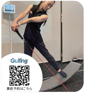 「Golfingスタジオ日本橋」では、クラブを振らずボールを打たずに3ヶ月でゴルフが上手くなる前例のないゴルフ施設です。身体の力が抜けてインナーマッスル主体の動きが身につき、体幹が主役になる。結果プロゴルファーのようなスイングになっていくことが体感できます。ボディバランスを研ぎ澄ますためのオリジナルバランスボードや動作の質を変える弾力性のある器具など、世界のトップアスリートが実践するトレーニングをゴルフに取り入れています。