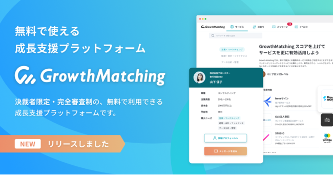 プロトスター株式会社(本社:東京都中央区、代表取締役社長:前川英麿、以下プロトスター)は、8月31日(水)より決裁者限定の成長支援プラットフォーム「GrowthMatching」(https://growth-matching.jp/)のα版をローンチいたします。