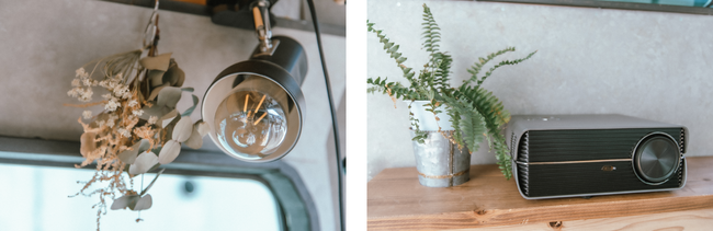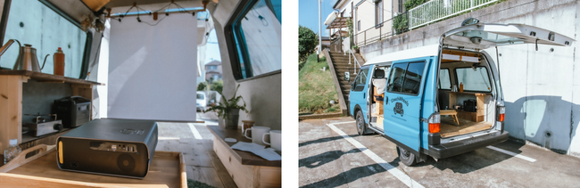 本サービスは、アウトドア派だけでなくインドア派も楽しめるサービスを目指しており、車外だけではなく車内の滞在も楽しめる設備とセットでキャンピングカーのレンタルをしております。一番のオススメはプロジェクターです。車両にはスクリーンを備え付けているので、どこでもアウトドアシアターをお楽しみいただけます。