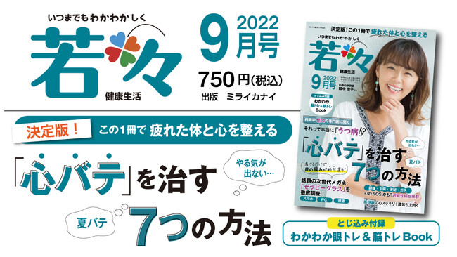 株式会社わかさ生活(本社:京都市下京区)は、健康雑誌『若々(わかわか)』2022年9月号を2022年9月1日(木)に株式会社ミライカナイ(本社:東京都中央区)から発売いたします。