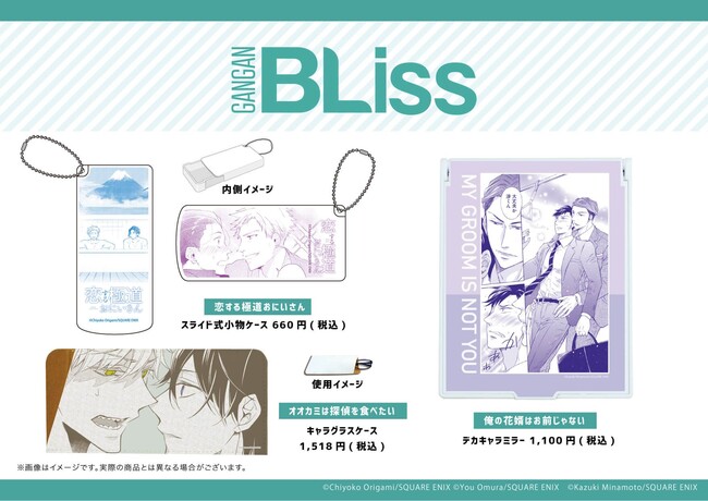 この4作品は、『ガンガンBLiss』が「至福のBLで、こころ、釘づけに。」をコンセプトに取り揃えた純愛BL。今回は、表紙や作品コマなどをデザインした商品がラインナップに登場します。