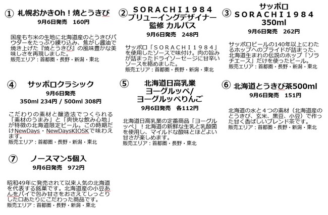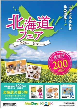 株式会社JR東日本クロスステーション リテールカンパニー(所在地:東京都渋谷区、カンパニー長:白石 敏男)は、運営する「NewDays」「NewDays KIOSK」において、9月6日(火)から10月3日(月)までの期間、「北海道フェア」を開催いたします。