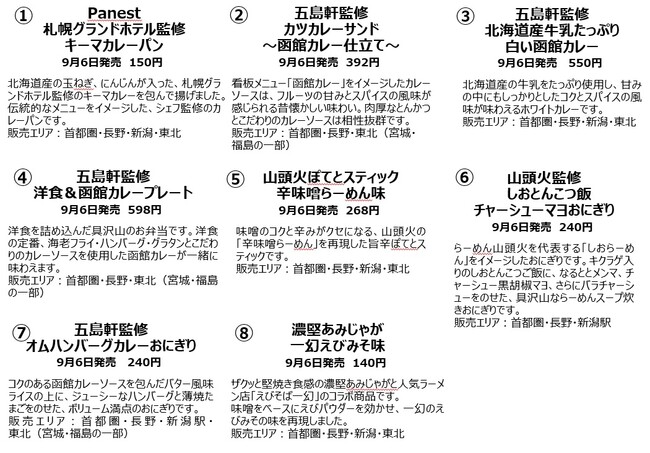 ⑴「らーめん山頭火」「えびそば一幻」「五島軒」「札幌グランドホテル」など、北海道の名店とのコラボ商品