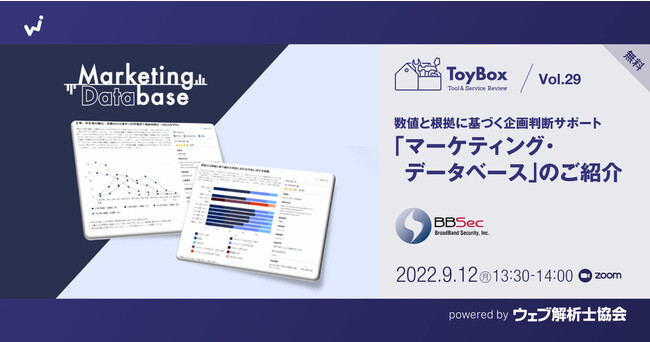 2022/9/12(月)13:30 - 14:00【ToyBox】 Vol.29 【無料】数値と根拠に基づく企画判断サポート 「マーケティング・データベース」のご紹介