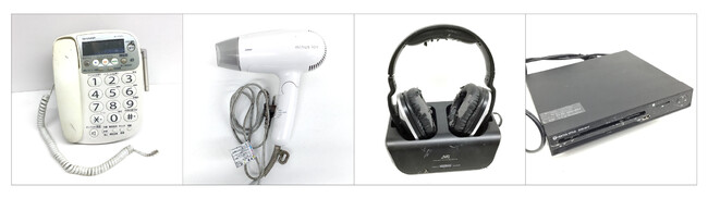 例えば、本体焼けの電話機。本体とコードが汚れたドライヤー。