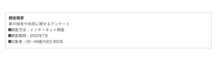 顧客満足度(CS)調査や消費者動向に関するリサーチ・コンサルティング会社であるJ.D. パワージャパン(本社:東京都港区、代表取締役社長:山本浩二、略称:J.D. パワー)は2022年7月に、車の保有や利用に関するアンケート調査を実施しました。