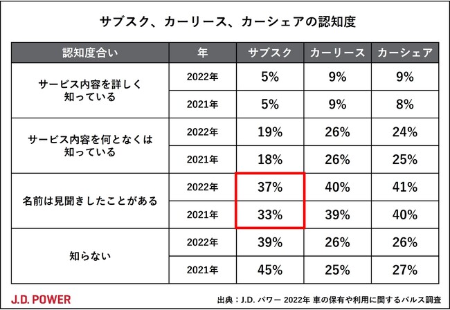 サブスクの認知度は上がりつつあるものの、車保有の手段として検討されるには至っていない