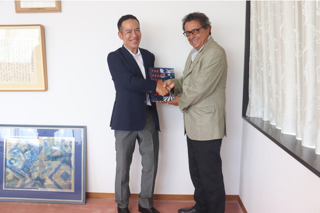 このたびの導入を機に、AFP通信東京支局長ルネ・スラマ氏が、8月23日(火)に神田外語大学へ来訪。神田外語グループ理事長の佐野元泰と面談し、本サービスの活用方法や今後の連携についてディスカッションをおこないました。AFP通信は本サービスを活用したワークショップやセミナーを開催しており、今後本学と連携して同様の企画を実施する見通しとなります。