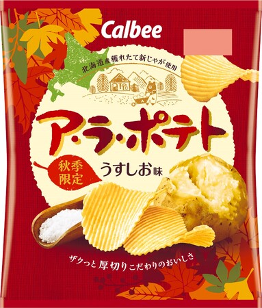 カルビー株式会社(本社:東京都千代田区、代表取締役社長:伊藤 秀二)は、北海道産の新じゃがのおいしさをしっかりと楽しめる秋限定の厚切りポテトチップス『ア・ラ・ポテト うすしお味/ じゃがバター味』を、2022年9月12日(月)から全国で期間限定発売します。※2022年11月下旬終売予定。