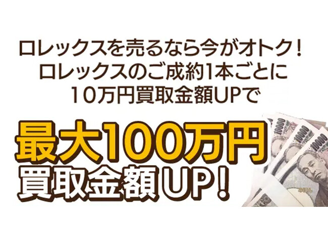これを受けて、買取専門店「おたからや」ではロレックスの買取強化を図るべく、最大100万円の買取金額UPが見込めるキャンペーンを開始しました。