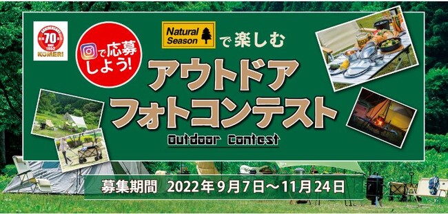 ホームセンターの「コメリパワー」や「コメリハード&グリーン」を通し地域のライフラインとして、地元のプロを応援する株式会社コメリ(所在地:新潟県 新潟市、代表取締役社長:捧雄一郎)は、2022年9月7日(水)から11月24日(木)までの期間で、Instagramにて応募できる「アウトドアフォトコンテスト」を開催いたします。