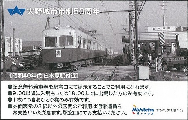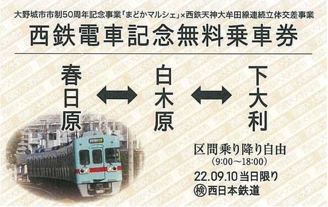 また、下大利駅・白木原駅・春日原駅間の電車運賃が無料となる、記念無料乗車券を発行します。
