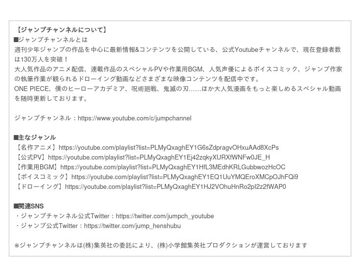 ・ジャンプチャンネル公式Twitter:https://twitter.com/jumpch_youtube