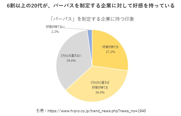 実際に、ある調査では20代の6割以上がパーパスを制定している企業に好感をもっていることがわかっています。
