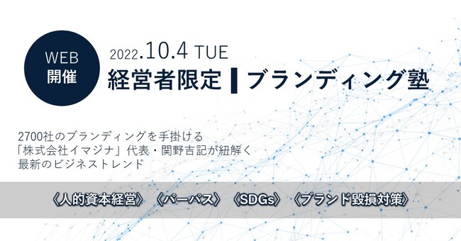 ブランディング事業を手掛ける株式会社イマジナは、10/4(火)にディスカッション形式のウェビナーを開催します。