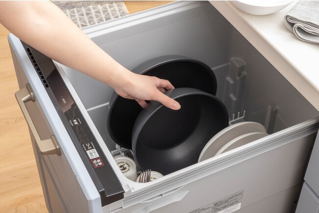 今回の「取っ手が外せる食洗機で洗えるフライパン」は、取っ手を取り外し、調理した料理をそのまま食卓に出すことができる、「取っ手が外せる」シリーズの特徴をそのままに、調理だけでなく、「片付けも、食器洗い乾燥機(食洗機)で洗って楽に済ませたい」というお客様からの声を取り入れることで誕生しました。