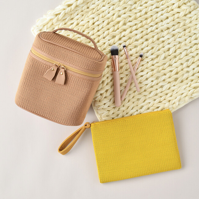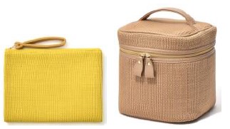 おでかけに持っていきたくなるパッと目をひく鮮やかなイエローのフラットポーチとナチュラルカラーがインテリアにも馴染みやすいバニティポーチは秋を先取りできるアイテムとして人気