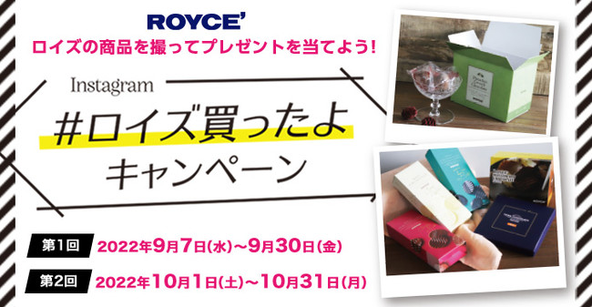 株式会社ロイズコンフェクト(北海道札幌市)は、Instagram「#ロイズ買ったよ 」キャンペーンを9月と10月に開催します。素敵な投稿をしていただいた方の中から各期間3名様 計6名様に、後日ロイズのチョコレートをお贈りします。ロイズのスイーツを撮ってぜひご応募ください!