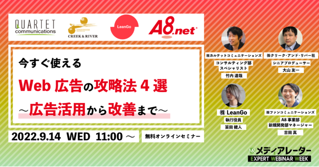 【9月14日開催】Web広告について徹底解説!無料セミナー「今すぐ使えるWeb広告の攻略法4選~広告活用から改善まで~」