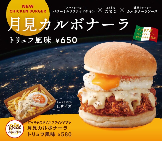 【お月見を楽しむ新商品】トリュフ風味のリッチなチキンバーガーとフライドポテト