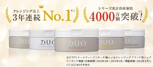3年連続クレンジング売上No.1*1を獲得!エイジングスキンケア*²ブランドDUO(デュオ)「ザ クレンジングバーム」シリーズ累計出荷個数4,000万個*³突破のお知らせ