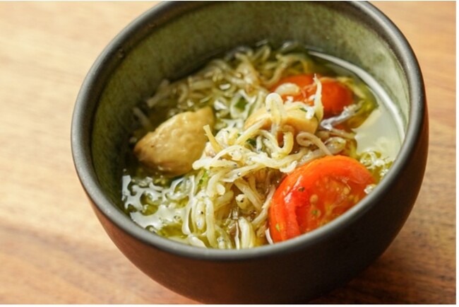 しらすのイノシン酸とマッシュルームのグルタミン酸、うまみ成分の相乗効果を最大限に活かした一品です。