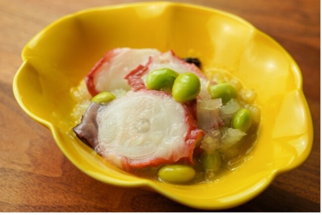 タコと枝豆をレモンの酸味を効かせたさっぱりマリネにしました。タコには肝臓をサポートしてくれるダウリン、枝豆にはアルコールと分解してくれるビタミンB群が豊富で、まさにお酒と一緒に取り入れていただきたい一品です。